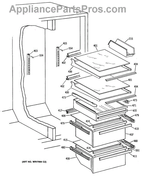 Causes for a malfunctioning Crisper Drawer Slide can include wear and tear from regular use, the accumulation of debris obstructing the slide's path, or damage incurred from overloading the drawer. This GE replacement part is also compatible with Hotpoint, RCA, and some Kenmore models. For matching left-hand side order WR72X209.