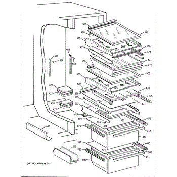 Cantilever shelf for side-by-side refrigerators. Replaces cracked, broken, or damaged shelving. Slides out for easy access to stored items.