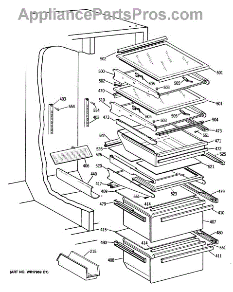 Causes for a malfunctioning Crisper Drawer Slide can include wear and tear from regular use, the accumulation of debris obstructing the slide's path, or damage incurred from overloading the drawer. This GE replacement part is also compatible with Hotpoint, RCA, and some Kenmore models. For matching left-hand side order WR72X209.