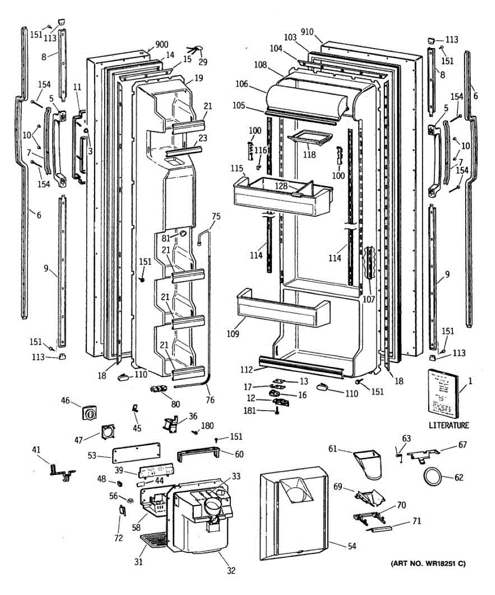 Ice dispenser door assembly seals the ice chute opening on your refrigerator. Replace if cracked, warped, or the rubber gasket is damaged and leaking air.