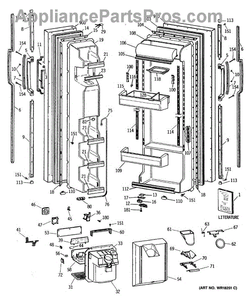 The Ice Door Assembly is an OEM part for GE refrigerators. It is integral to the ice dispenser system, controlling access to the ice chute. This component ensures the efficient delivery of ice cubes or crushed ice when activated and seals off the chute when not in use to maintain the freezer's temperature and prevent frost buildup.