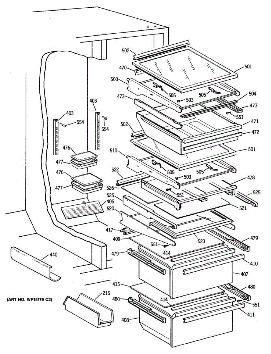 Cantilever shelf for side-by-side refrigerators. Replaces cracked, broken, or damaged shelving. Slides out for easy access to stored items.