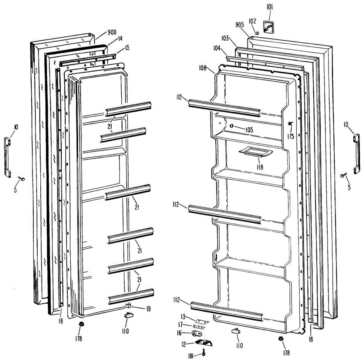 Hardware fasteners for securing refrigerator door panels and components. Includes screws, nuts, and washers for assembly. Replace missing or stripped pieces.