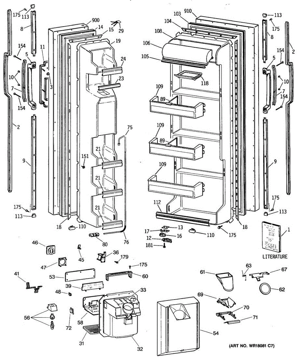 Ice dispenser door assembly seals the ice chute opening on your refrigerator. Replace if cracked, warped, or the rubber gasket is damaged and leaking air.