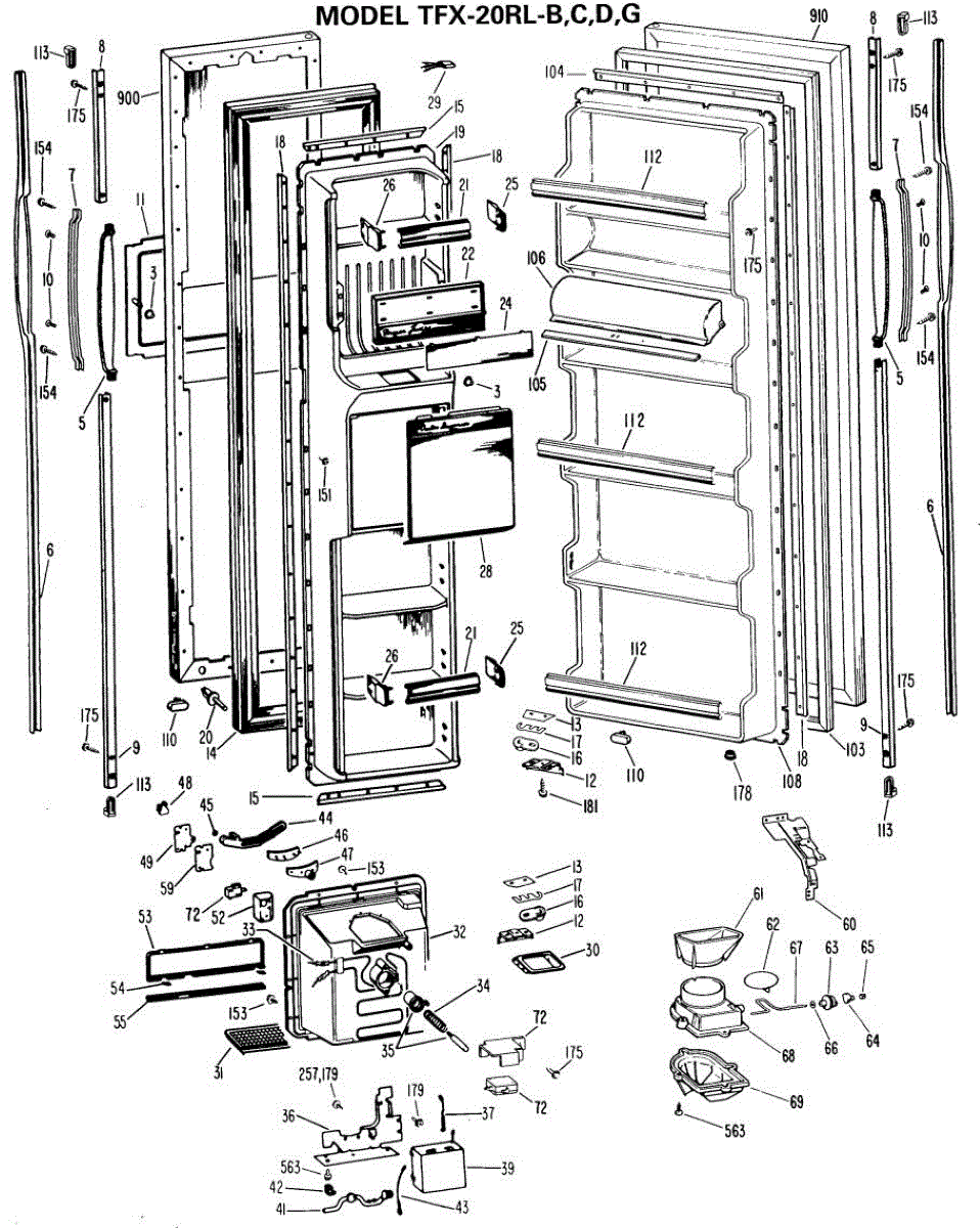 Hardware fasteners for securing refrigerator door panels and components. Includes screws, nuts, and washers for assembly. Replace missing or stripped pieces.