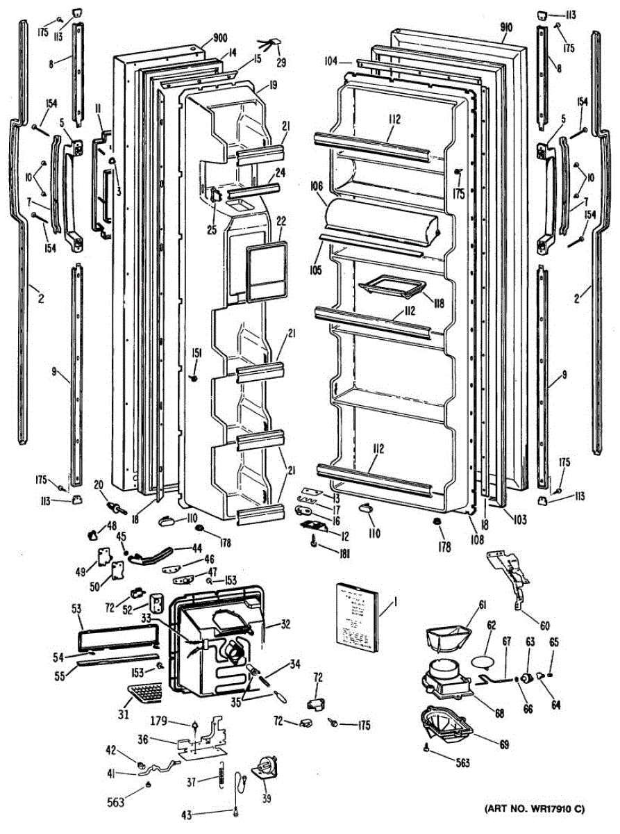 Hardware fasteners for securing refrigerator door panels and components. Includes screws, nuts, and washers for assembly. Replace missing or stripped pieces.