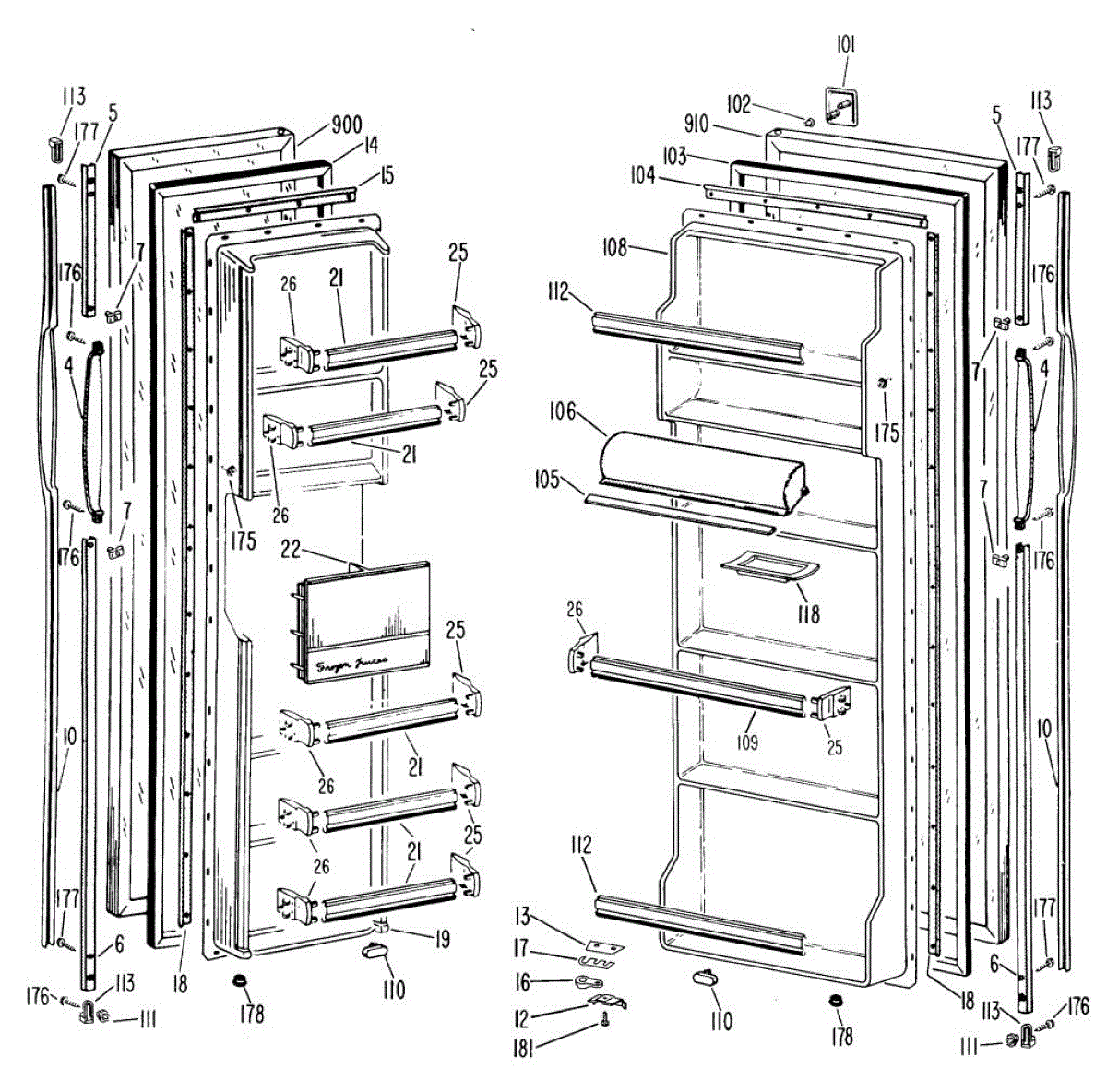 Hardware fasteners for securing refrigerator door panels and components. Includes screws, nuts, and washers for assembly. Replace missing or stripped pieces.