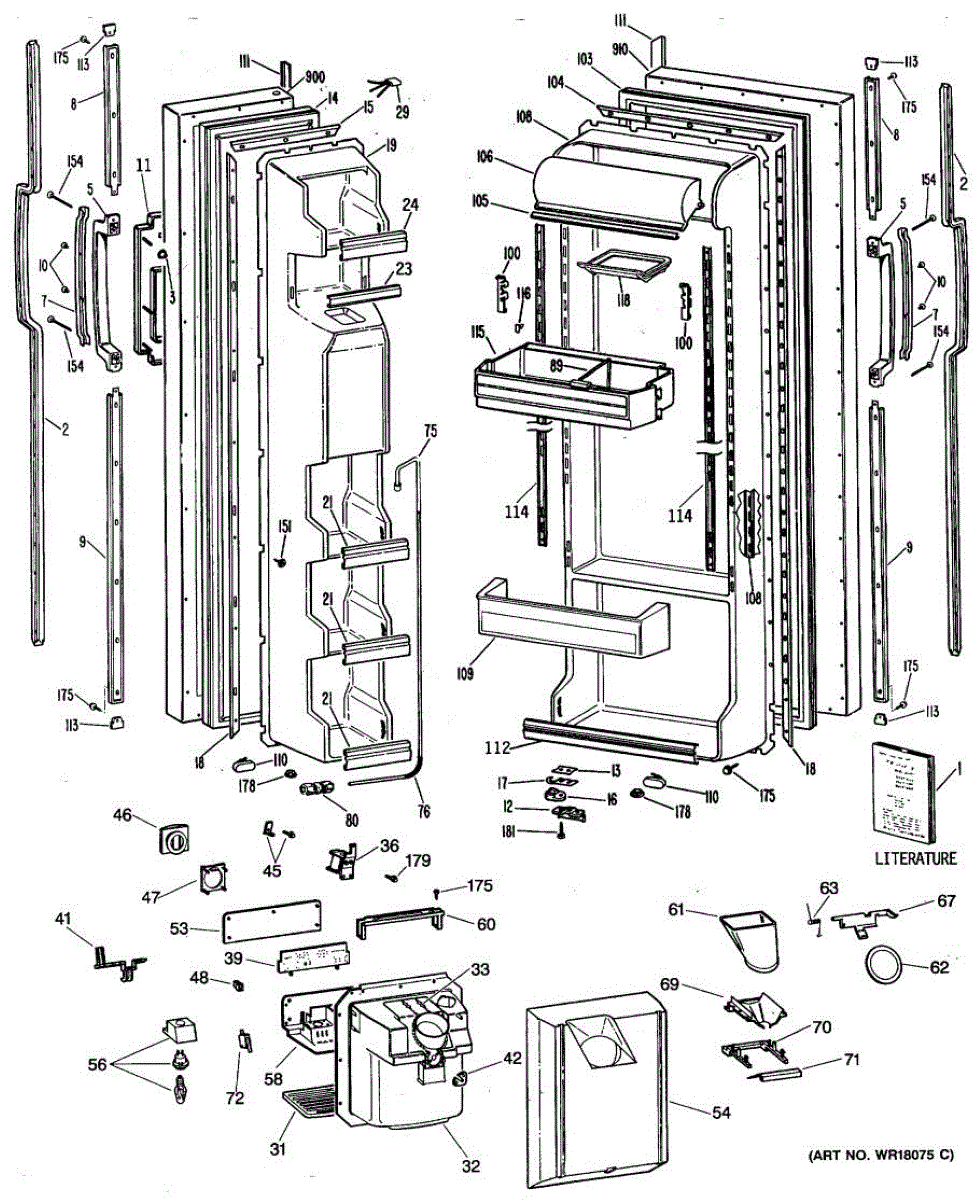 Ice dispenser door assembly seals the ice chute opening on your refrigerator. Replace if cracked, warped, or the rubber gasket is damaged and leaking air.