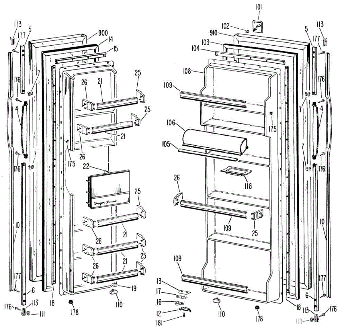 Hardware fasteners for securing refrigerator door panels and components. Includes screws, nuts, and washers for assembly. Replace missing or stripped pieces.