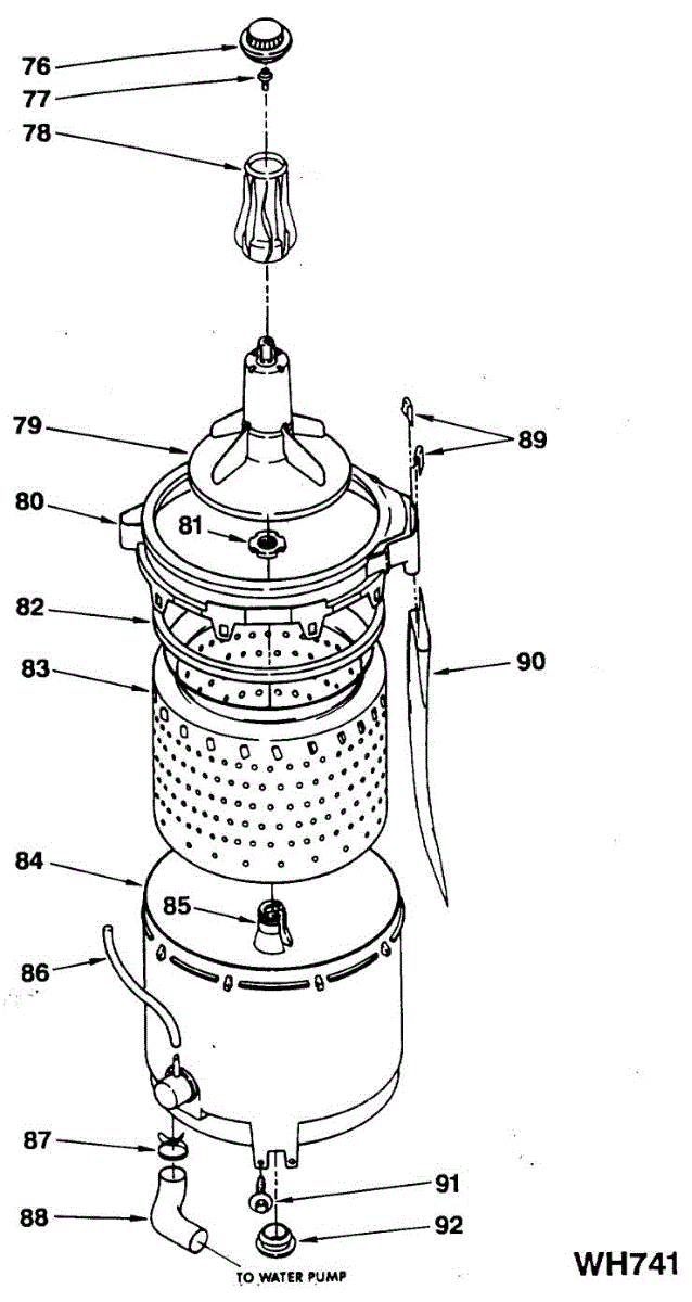 Replacement washer basket that holds clothing during wash and spin cycles. Needed when the original basket is cracked, damaged, or has broken fins.