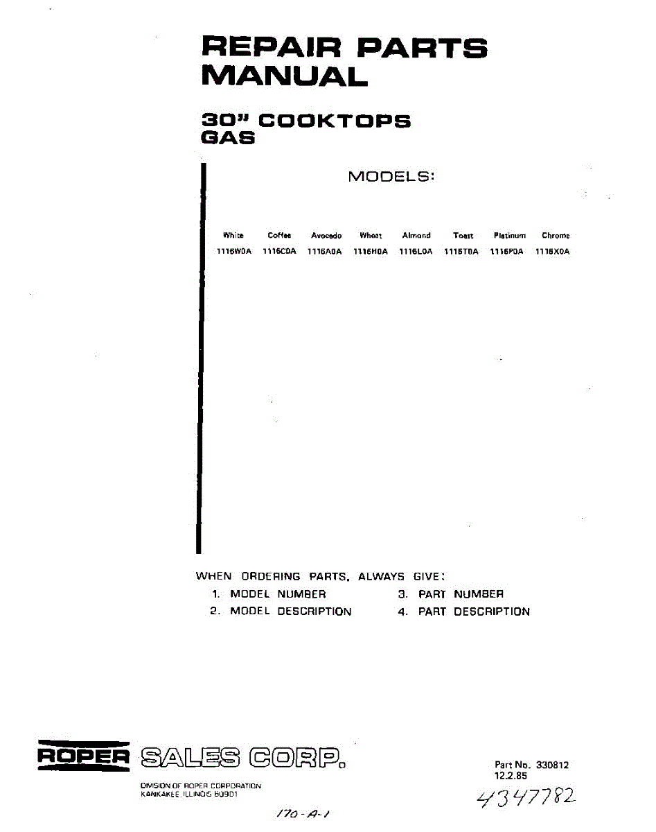 Parts for Roper 1116W0A: 01 - Section Parts