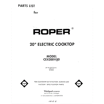 Parts for Roper CEX200VX0: 01 - Section Parts