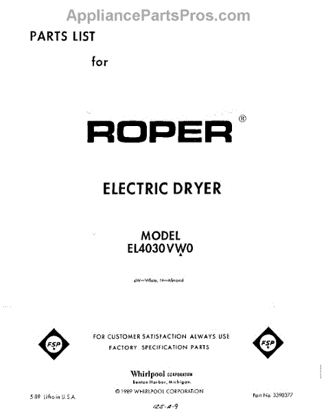 Parts for Roper EL4030VW0: 01 - Section Parts