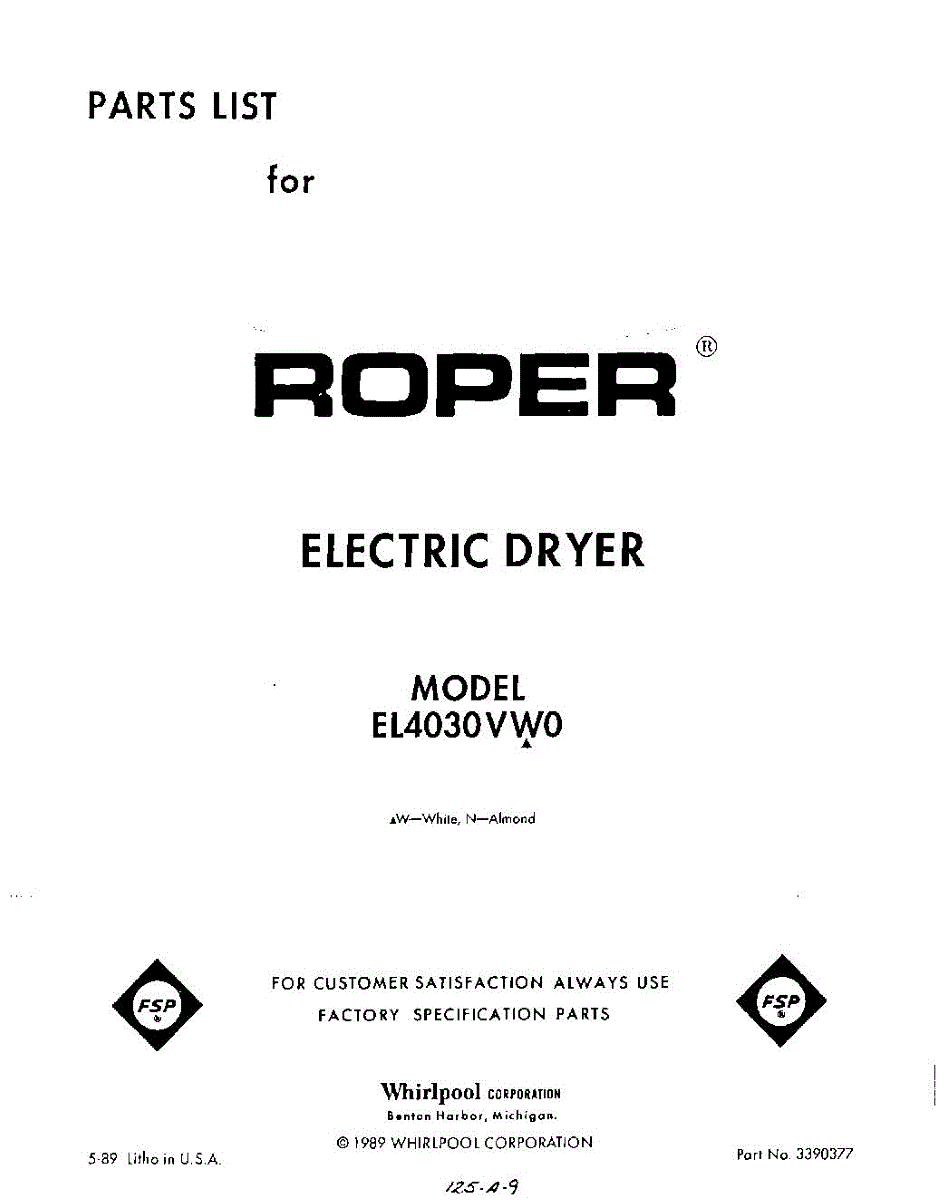 Roper Dryer Parts