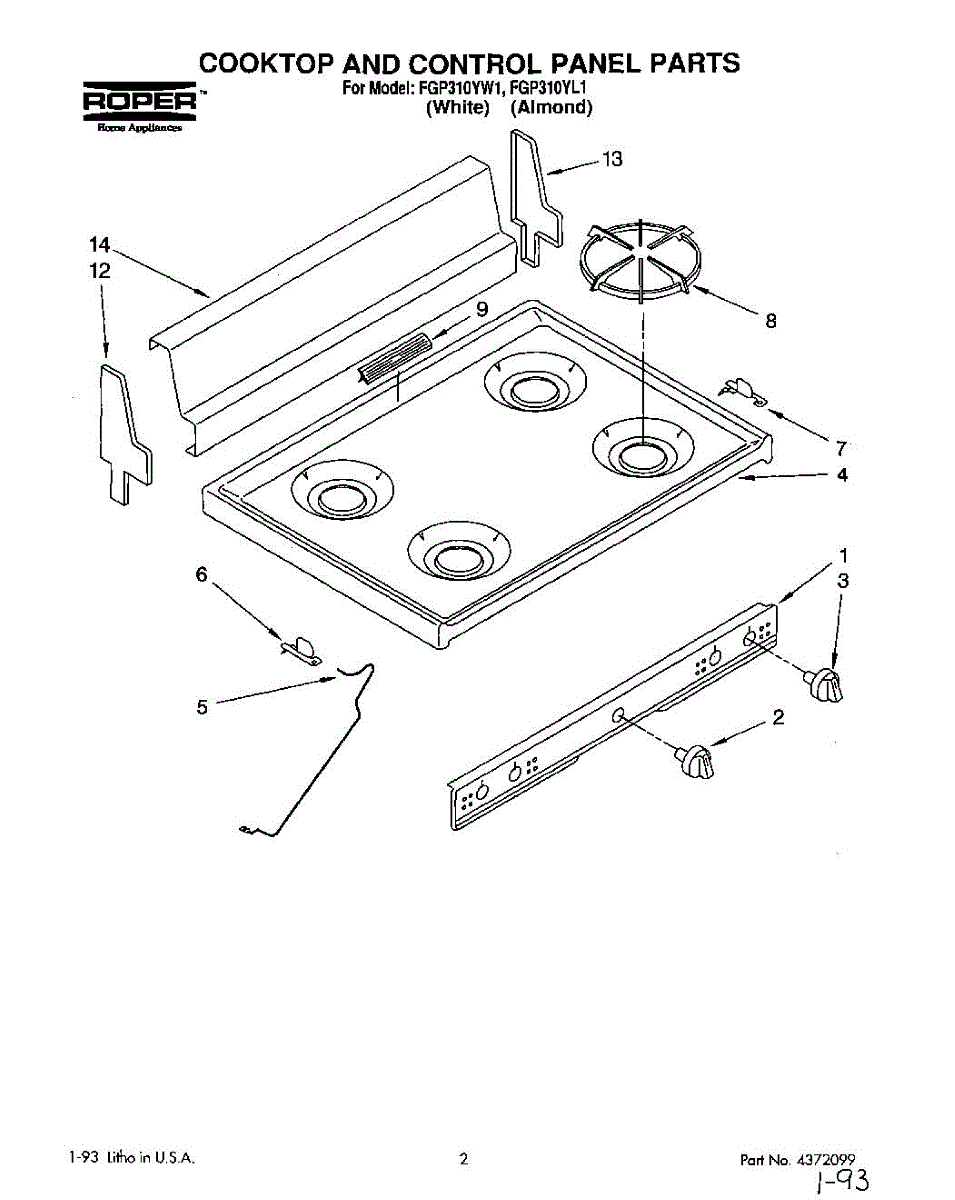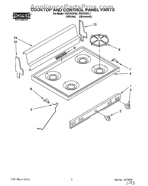 Parts for Roper FGP310YW1: 01 - Section Parts