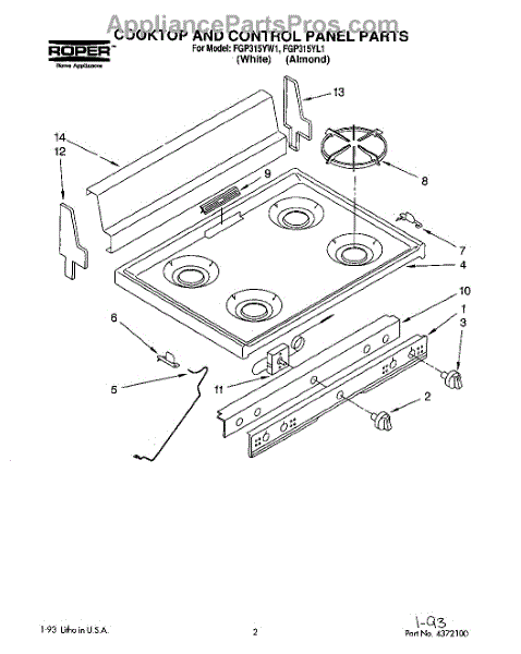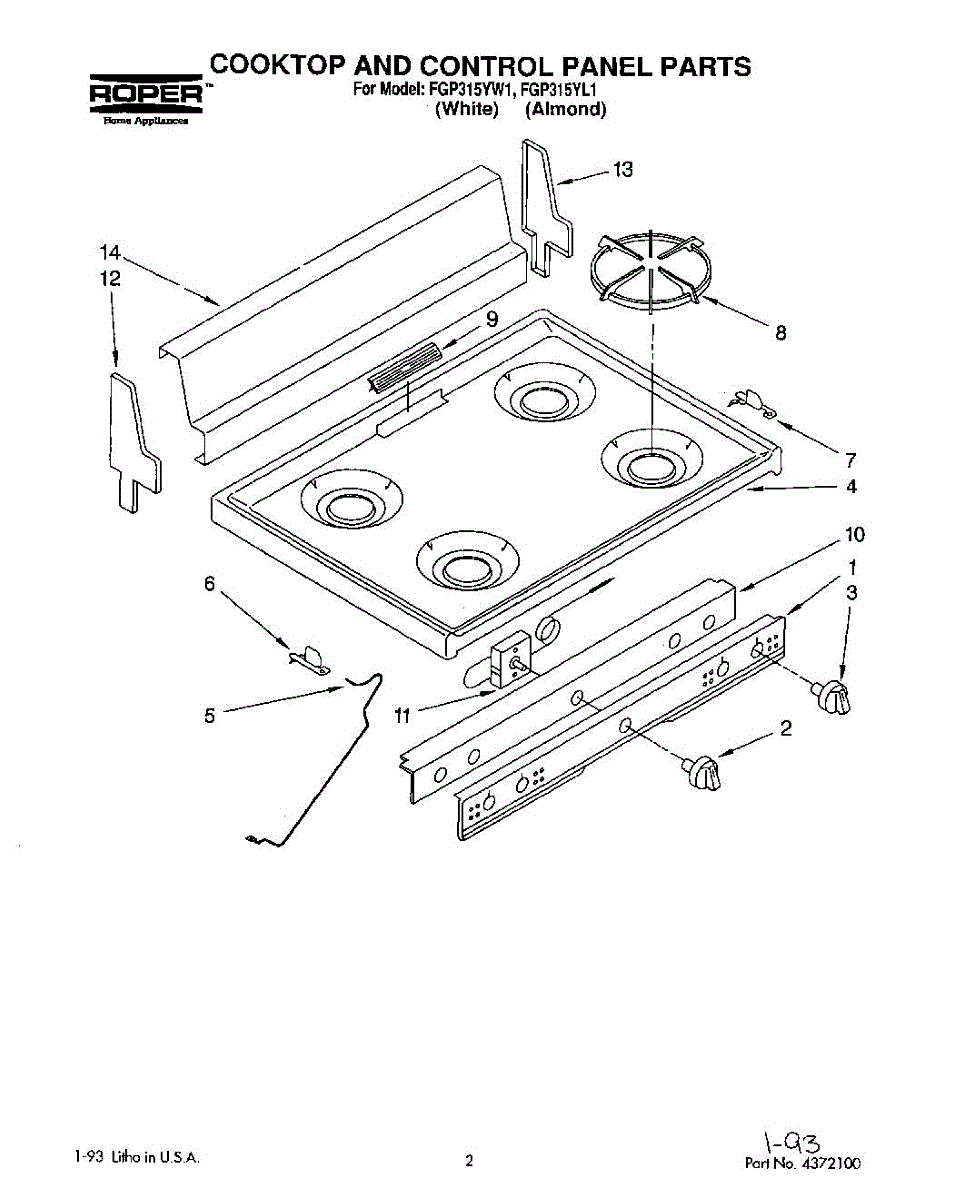 Parts for Roper FGP315YW1: 01 - Section Parts