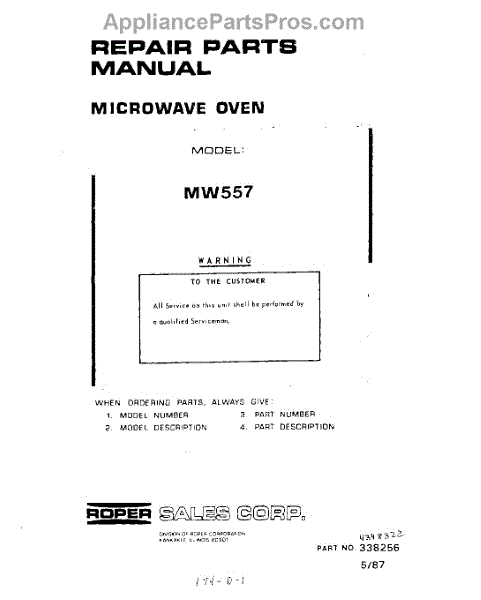 Parts for Roper MW557: 01 - Section Parts