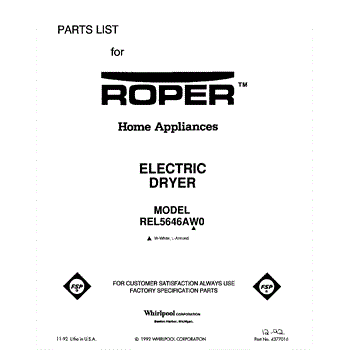 Parts for Roper REL5646AW0: 01 - Section Parts