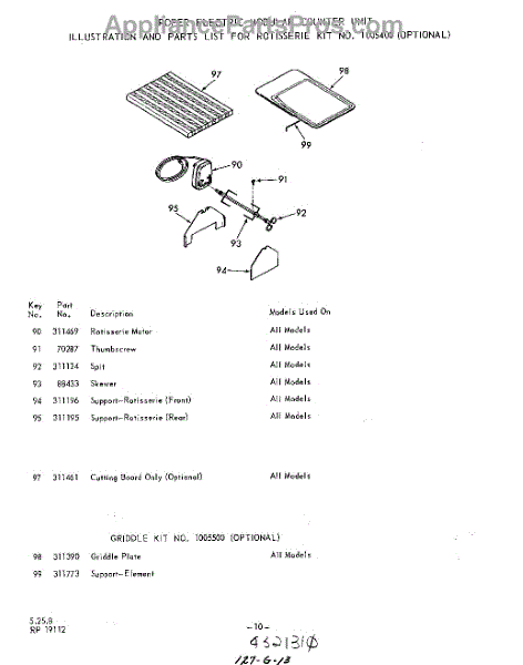 Parts for Whirlpool 1005500: 01 - Section Parts