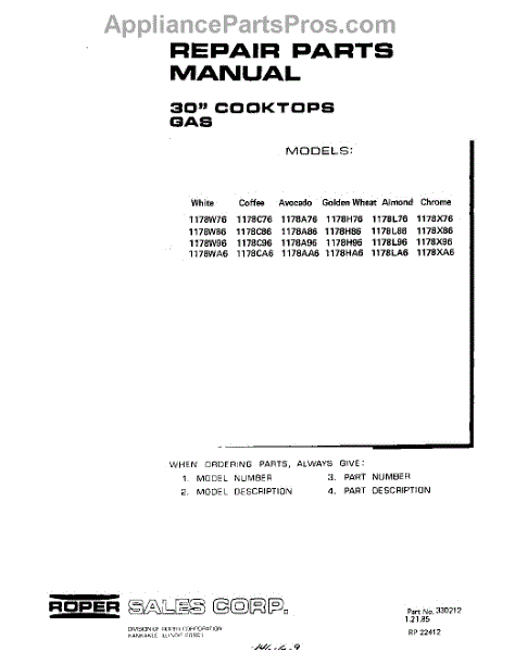 Parts for Whirlpool 1178W86: 01 - Section Parts