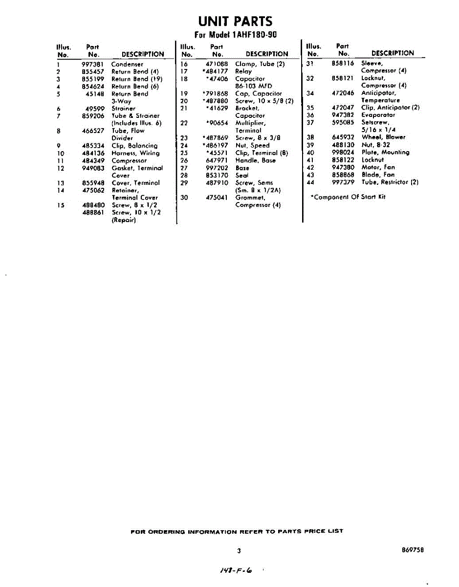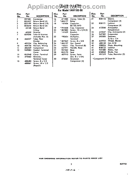 Parts for Whirlpool 1AHF18090: 03 - Section Parts