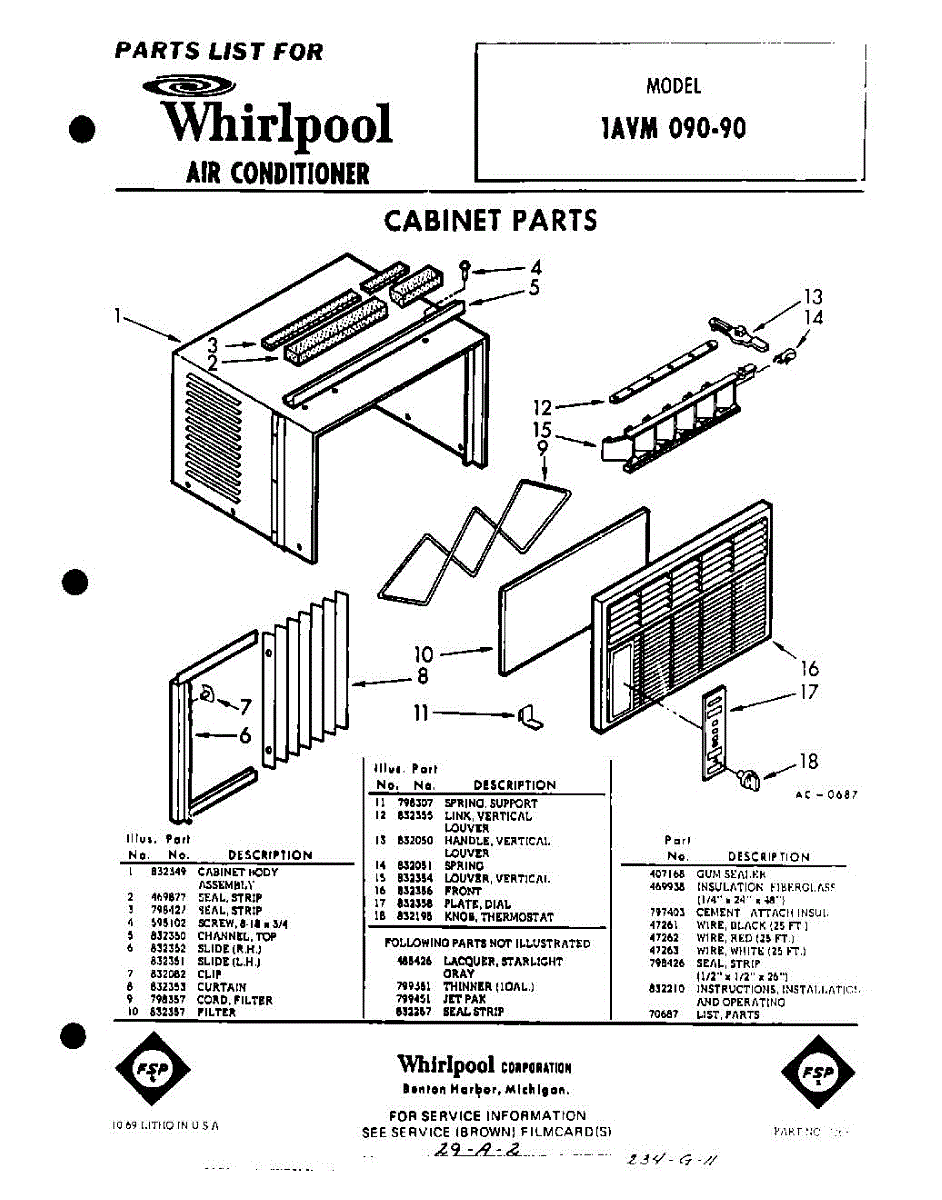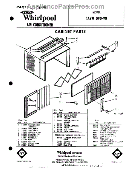 Parts for Whirlpool 1AVM09090: 01 - Section Parts