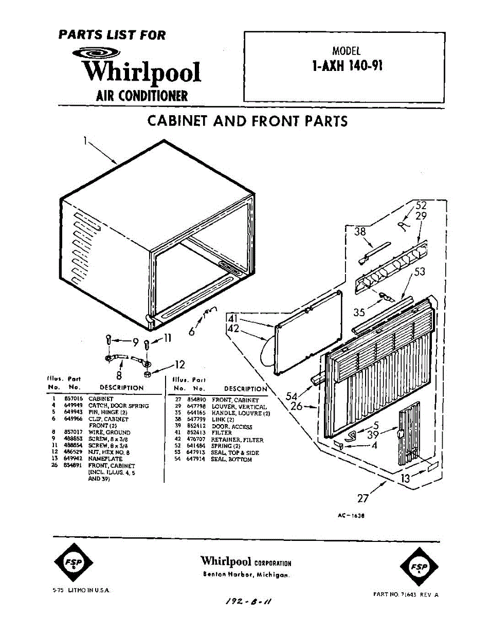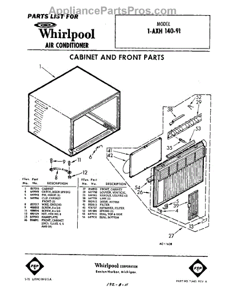 Parts for Whirlpool 1AXH14091: 01 - Section Parts