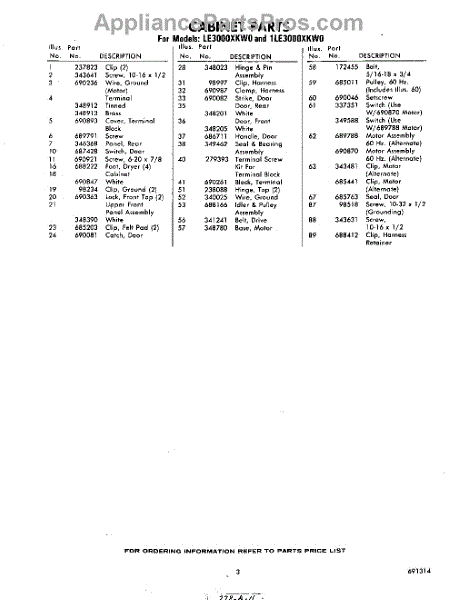 Parts for Whirlpool 1LE3000XKW0: 03 - Section Parts
