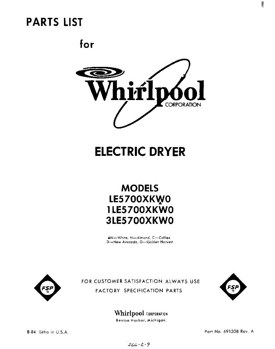 Parts for Whirlpool 1LE5700XKW0: 01 - Section Parts