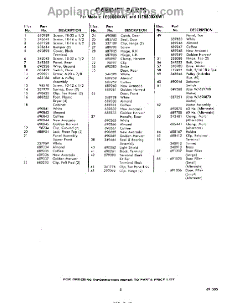 Parts for Whirlpool 1LE9800XKW1: 05 - Section Parts
