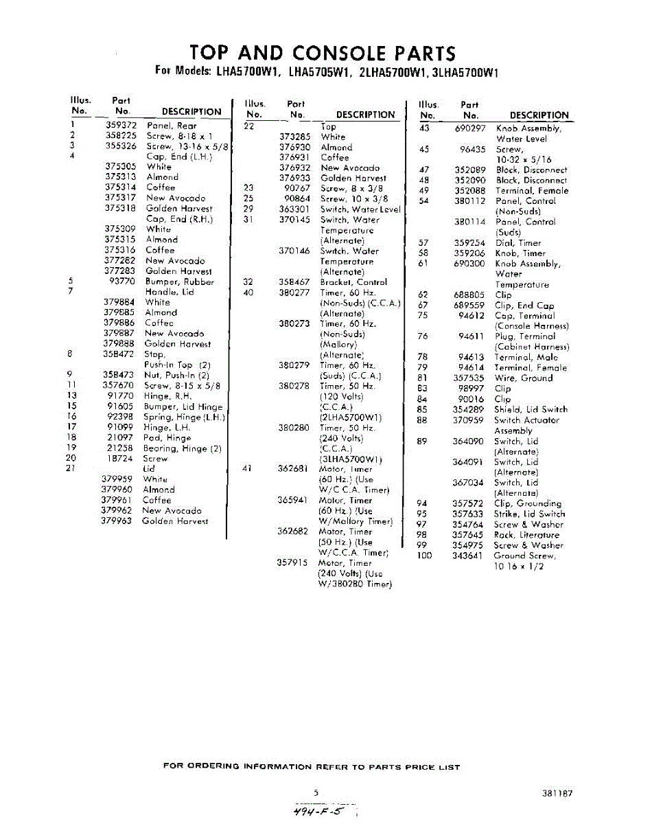 Parts for Whirlpool 2LHA5700W1: 05 - Section Parts