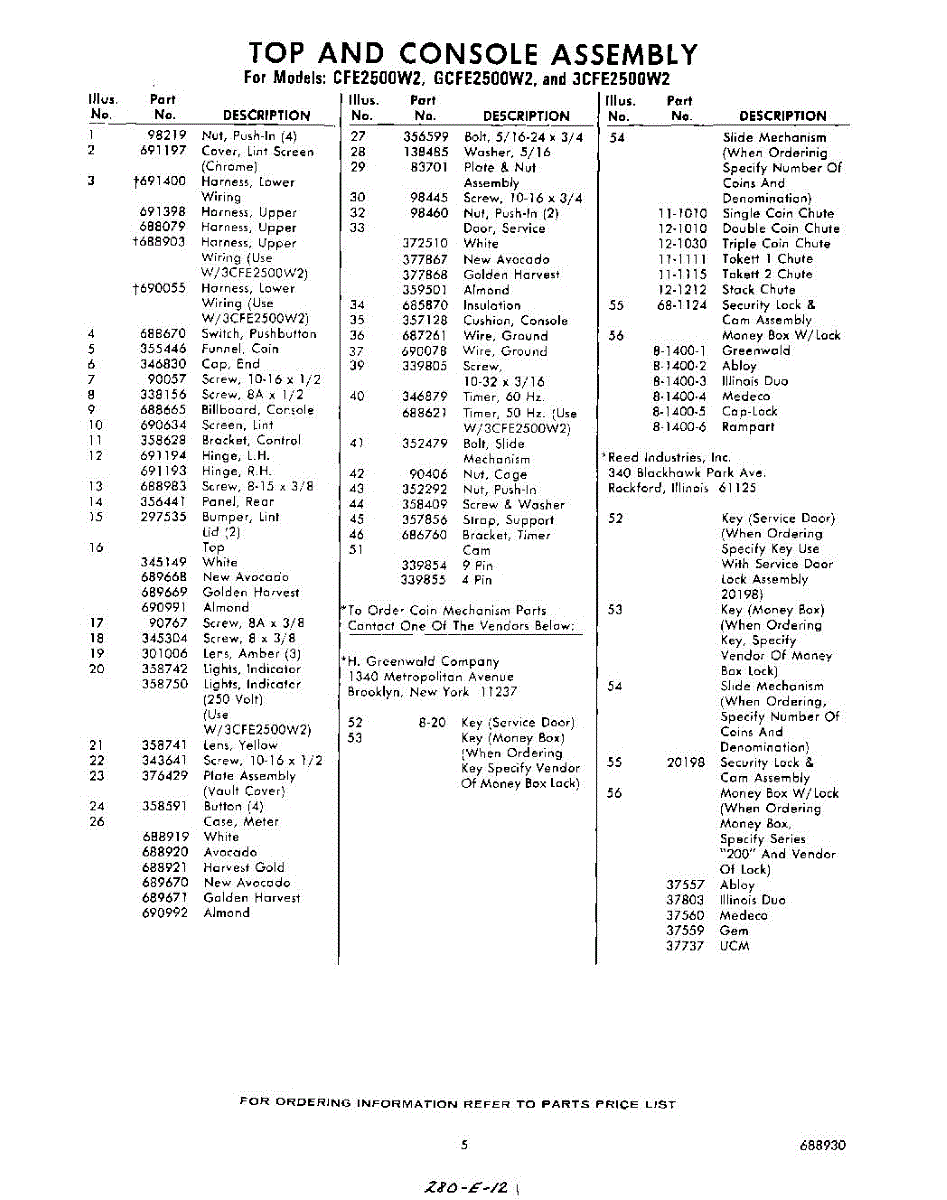 Parts for Whirlpool 3CFE2500W2: 05 - Section Parts