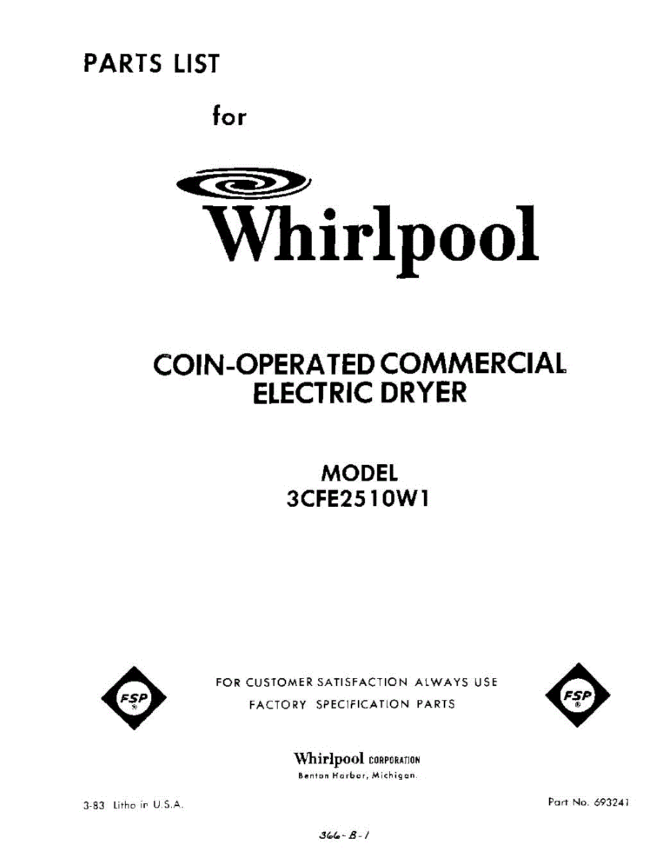 Parts for Whirlpool 3CFE2510W1: 01 - Section Parts