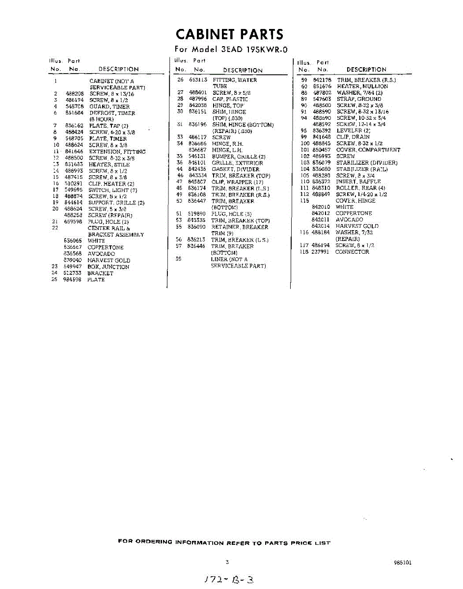 Parts for Whirlpool 3EAD19SKWR0: 03 - Section Parts