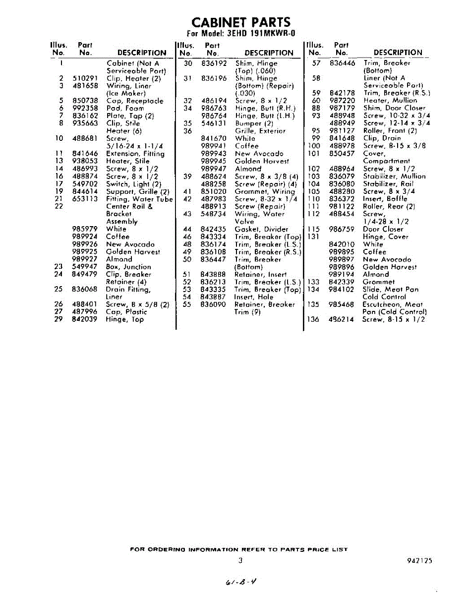 Parts for Whirlpool 3EHD191MKWR0: 03 - Section Parts