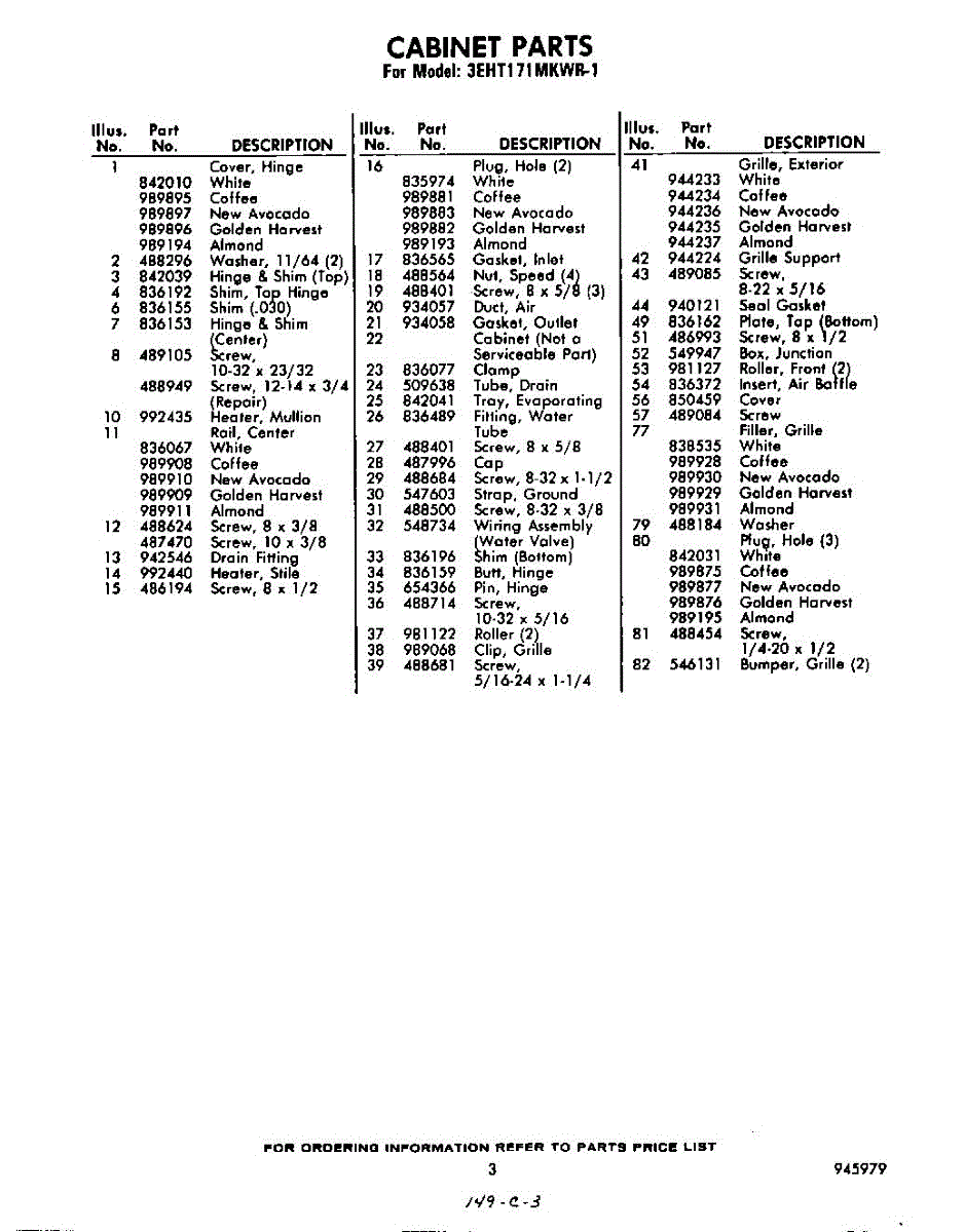 Parts for Whirlpool 3EHT171MKWR1: 03 - Section Parts
