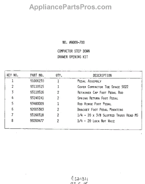 Parts for Whirlpool 8009700: 01 - Section Parts