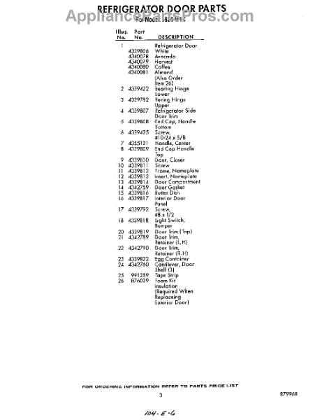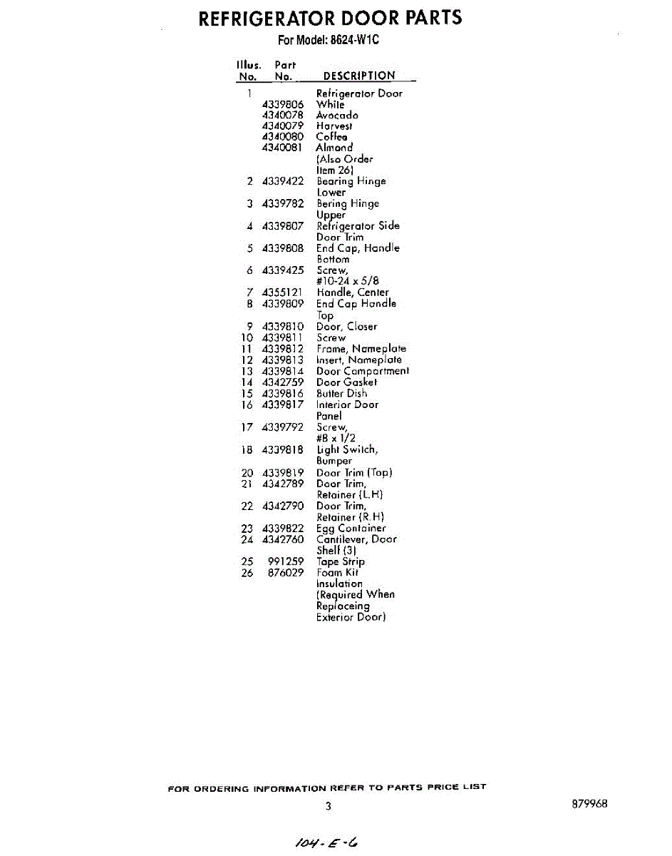 Parts for Whirlpool 8624W1C: 03 - Section Parts