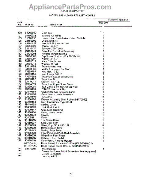 Parts for Whirlpool 8963L00: 03 - Section Parts