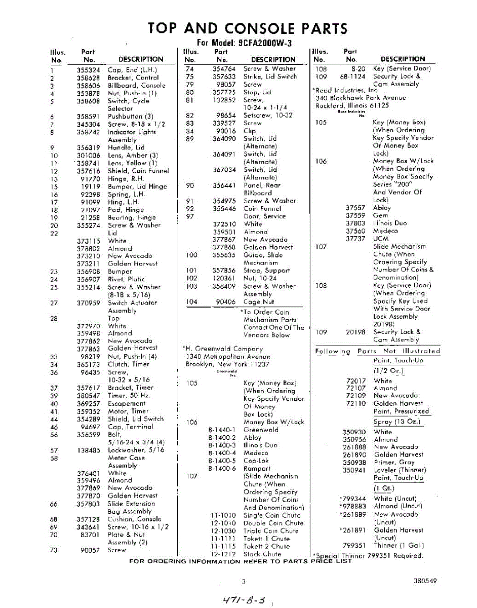 Parts for Whirlpool 9CFA2000W3: 03 - Section Parts