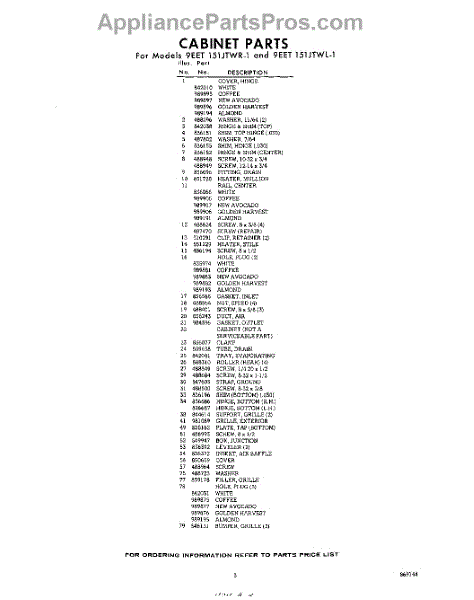 Parts for Whirlpool 9EET151JTWR1: 03 - Section Parts
