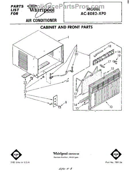 Parts for Whirlpool ACE082XP0: 01 - Section Parts