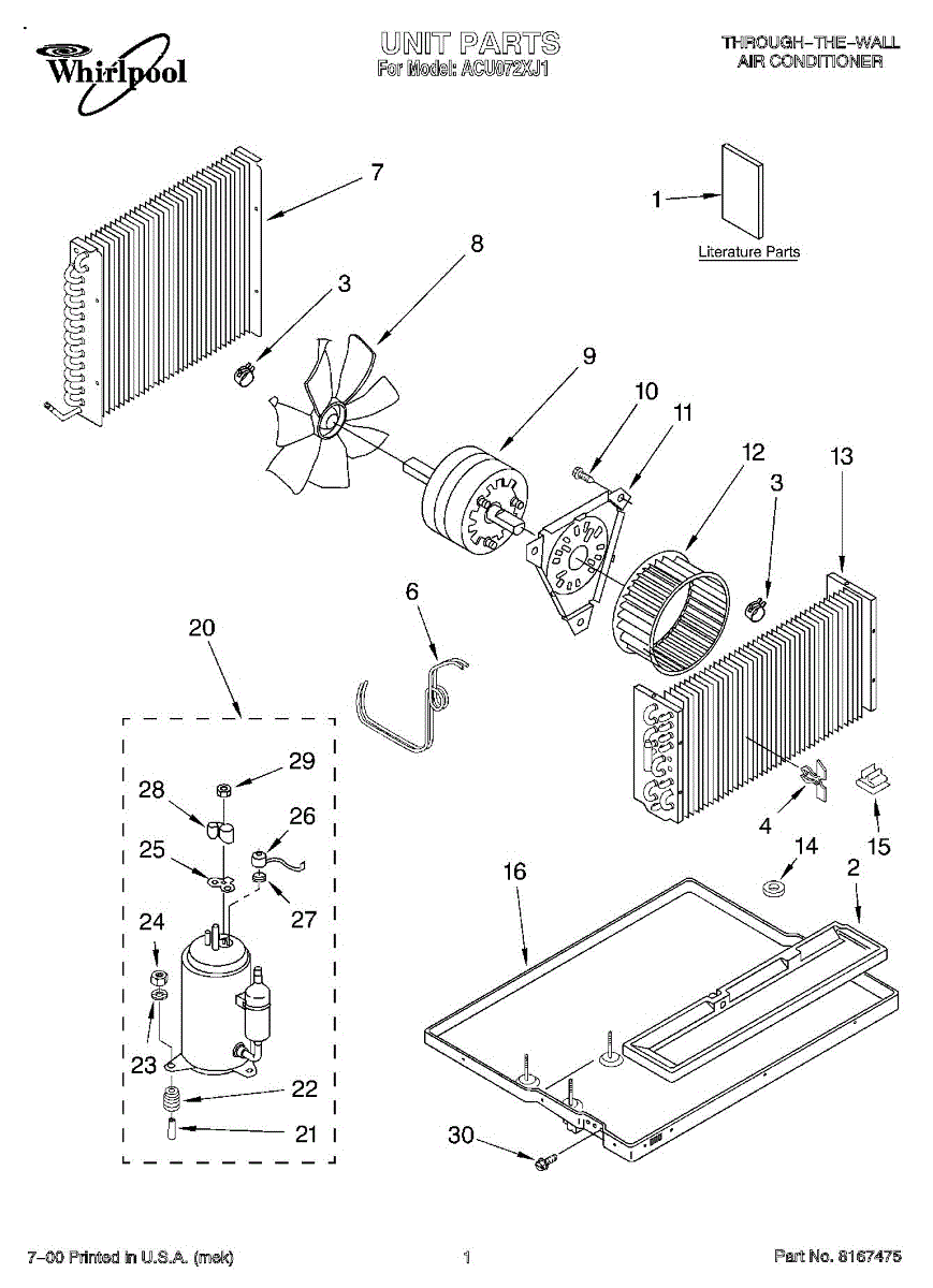 Parts for Whirlpool ACU072XJ1: 01 - Section Parts