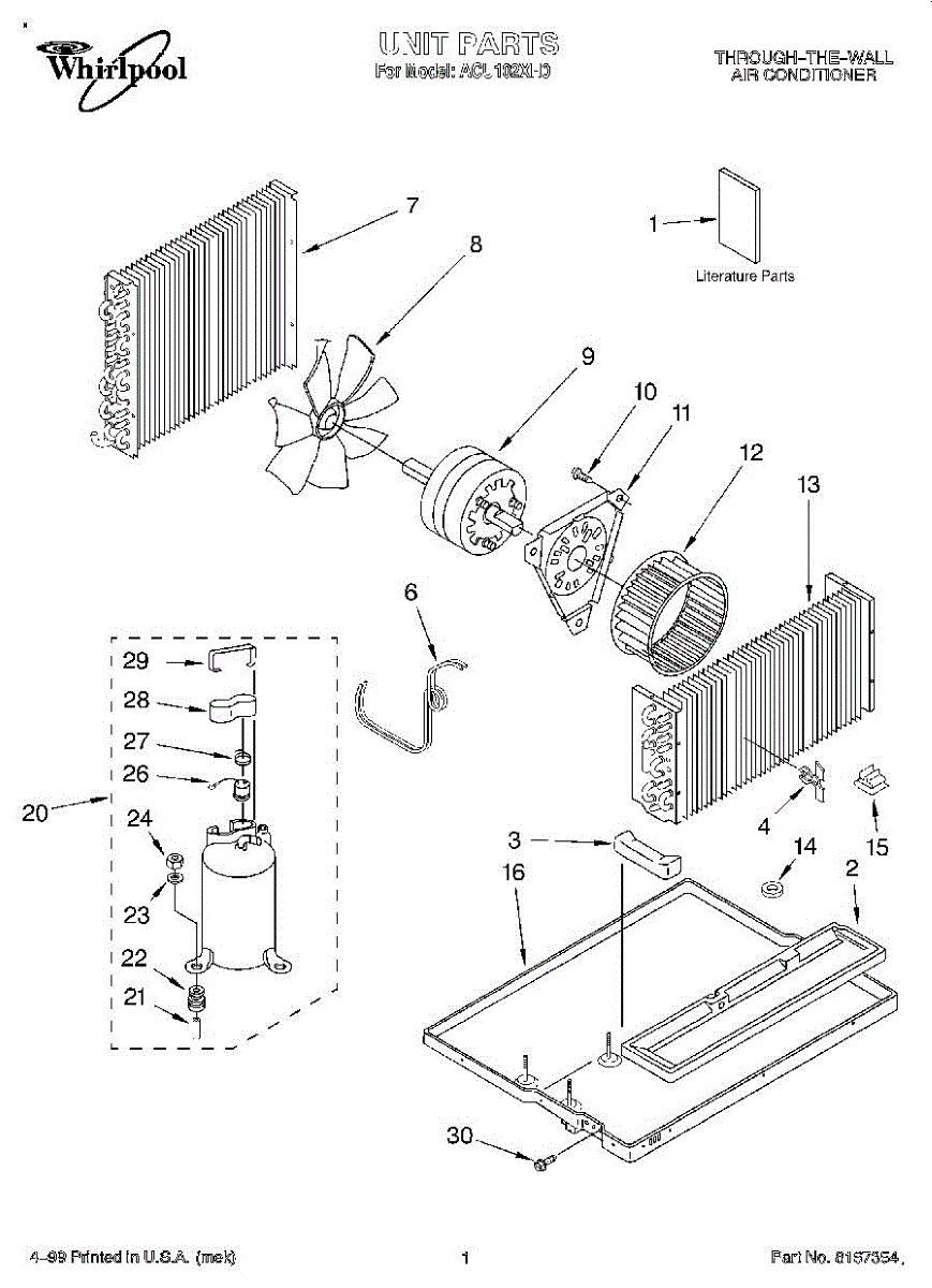 Parts for Whirlpool ACU102XH0: 01 - Section Parts