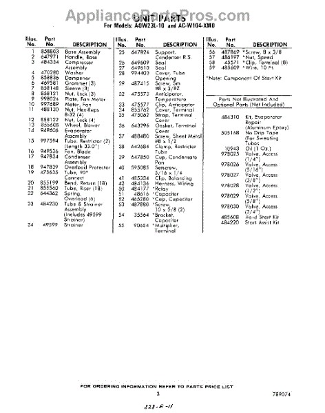 Whirlpool Air Conditioner Parts