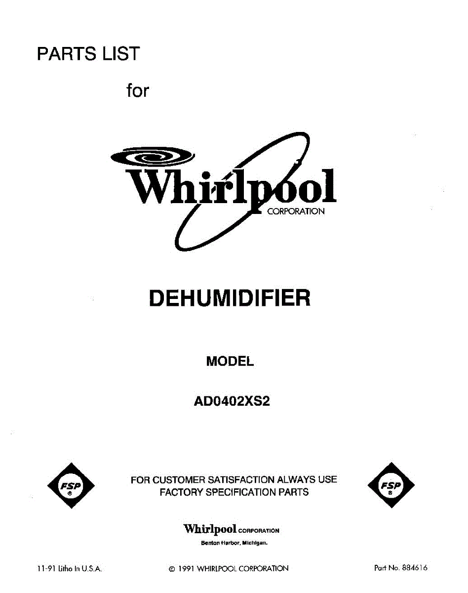 Parts for Whirlpool AD0402XS2: 01 - Section Parts