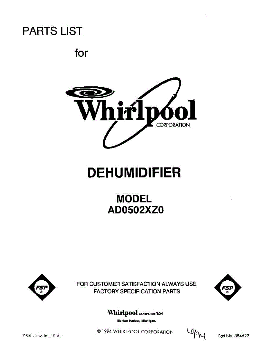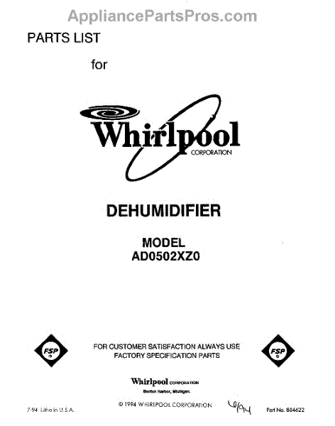 Whirlpool Dehumidifier Parts