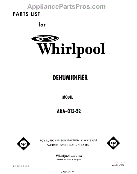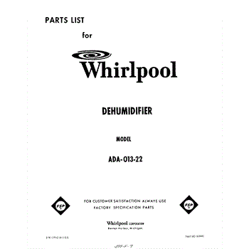 Parts for Whirlpool ADA01322: 01 - Section Parts