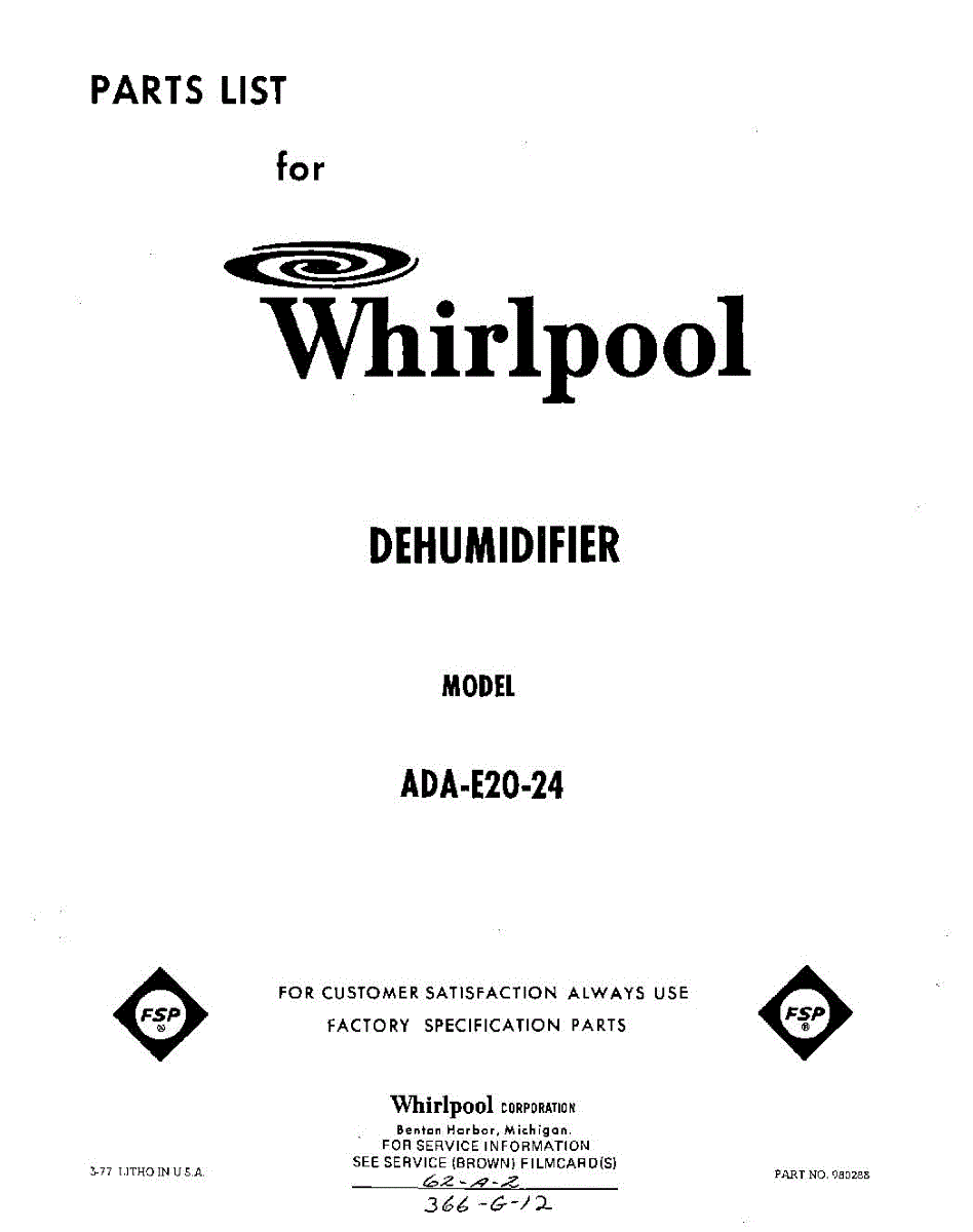 Whirlpool Dehumidifier Parts