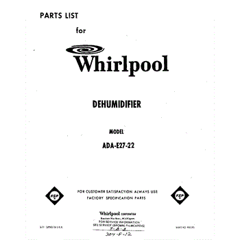 Whirlpool Dehumidifier Parts